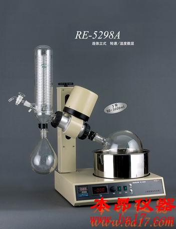 RE-5298A旋轉蒸發器用途簡介:旋轉式蒸發器是采用旋轉蒸發瓶(燒瓶),增大蒸發面積在減壓下置于水浴中一邊旋轉,一邊加熱的裝置,使瓶內溶液擴散蒸發。是化學工業,醫藥工業,高等院校和科研實驗室等單位用于制造及分析實驗賴以濃縮,干燥,回收等較為理想的必備基本儀器。
